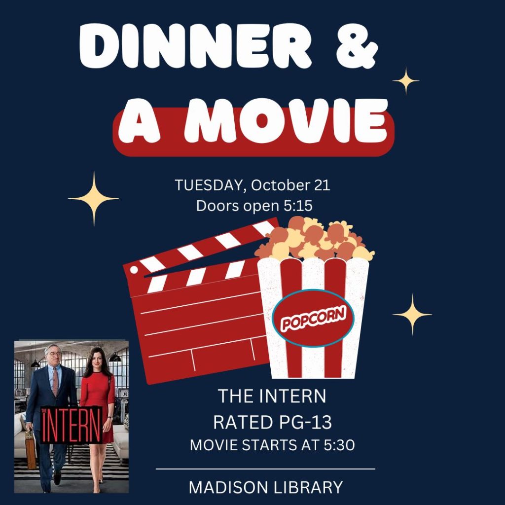 Join us for popcorn, dinner, and a movie. Please bring an item to share (dinner or dessert), but not mandatory to attend. Movie Night (for grown-ups!)