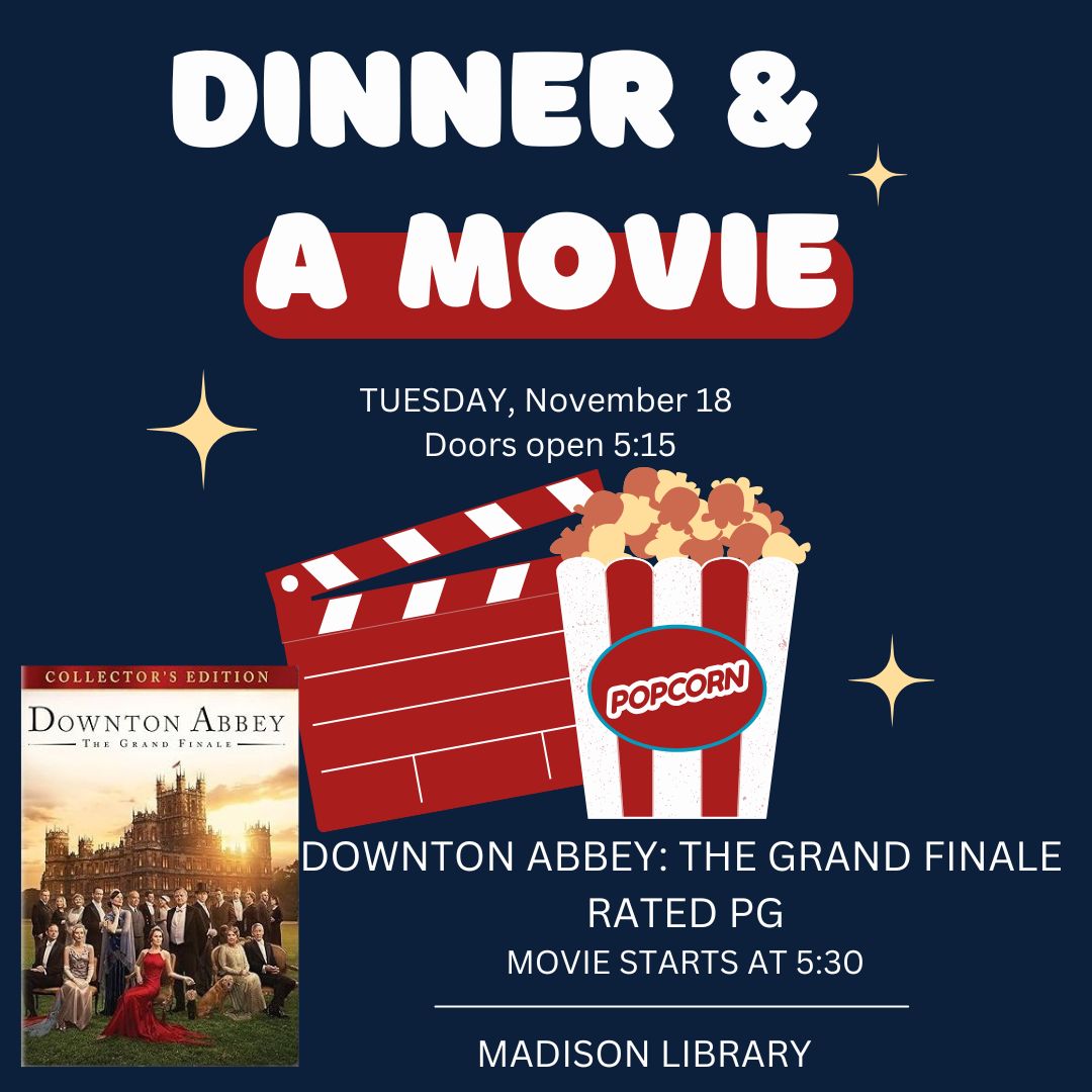 Join us for popcorn, dinner, and a movie. Please bring an item to share (dinner or dessert), but not mandatory to attend. Movie Night (for grown-ups!)